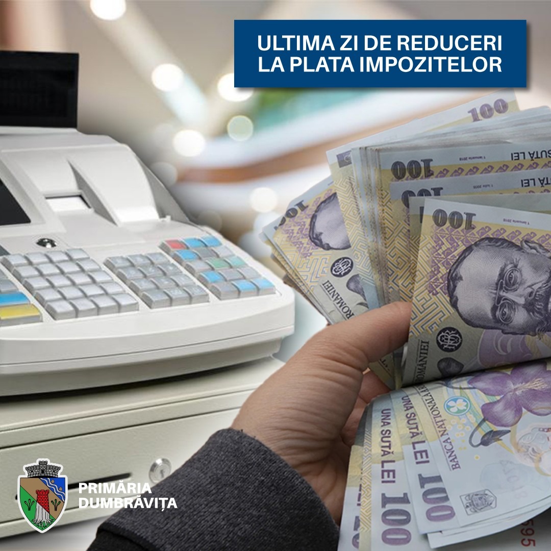 Atenție! Marți, 31 martie, se poate plăti cash la casieria primăriei până la ora 11:00, după această oră se acceptă doar plata cu cardul. Vă reamintim că persoanele care achită integral impozitul până la data de 31 martie 2026 beneficiază de o bonificaţie de 10%. Plata obligațiilor...
