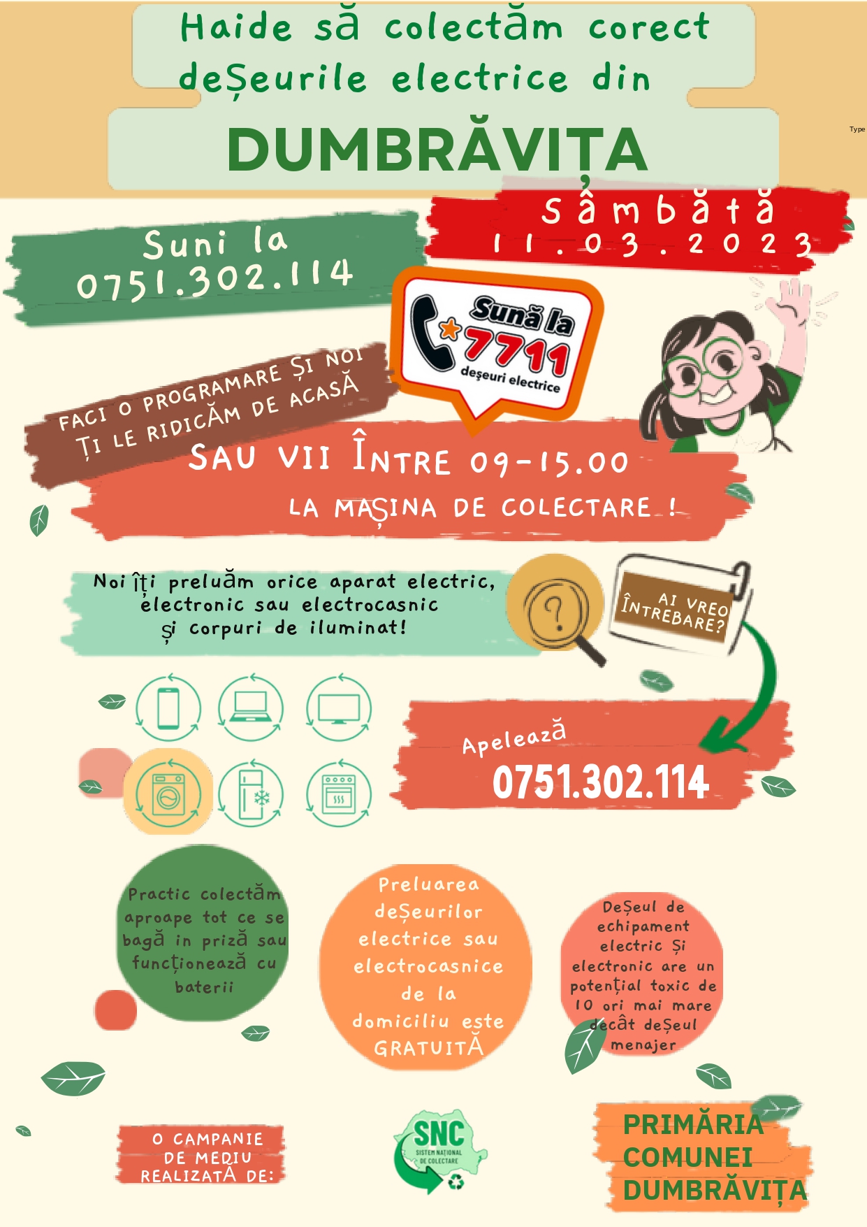 Sâmbătă, 11 martie, pe raza comunei va avea loc o acțiune de colectare a deșeurilor electrice.