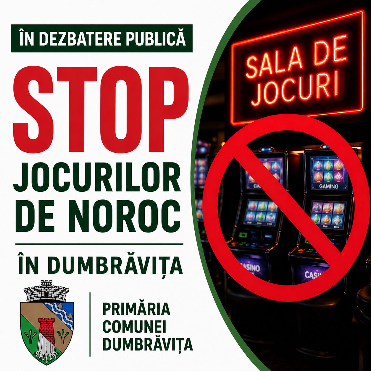 Dezbatere publică: interzicerea sălilor pentru jocuri de noroc în Dumbrăvița!