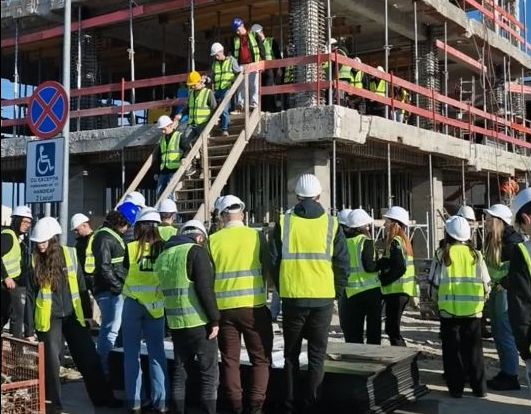 Studenții din anul III de la Facultatea de construcții au venit pe șantierul de la școala care se ridică în locul fostului Incubator, ca să vadă cu ochii lor lucrările de consolidare de la vechea clădire.
